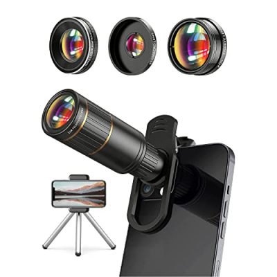 The Phone Camera Lens Kit 4 in 1 from COSULAN is designed for photographers and professionals, allowing them to expand the capabilities of their smartphones’ photography. The kit includes a 22X telephoto lens, a 205° fisheye lens, a 4K HD 0.67X wide angle lens, and a 25X macro lens. These lenses offer a wide range of creative options, from capturing distant scenery to taking extreme close-up shots. The kit also includes high-quality components, such as multi-coated glass optics for crisp, high-resolution images. It is compatible with all iPhones and Android phones, and comes with a carrying bag for easy portability. While there are some compatibility issues with newer iPhone models and the tripod stand could be improved, the Phone Camera Lens Kit 4 in 1 offers a good value and useful features for smartphone photographers.
