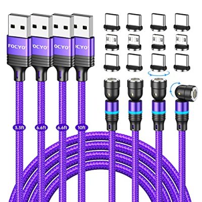 The FOCYO Magnetic Charging Cable is a versatile and convenient solution for fast charging and data transfer. With its 540° rotating and bendable head, you can easily find the perfect angle for any occasion. The universal design allows the cable to be compatible with type C, micro USB, and magnetic connectors, meeting the charging needs of 99% of devices. The 3A fast charging capability and high-speed data transfer speeds make this cable efficient and reliable. The strong magnetism ensures a secure connection and prevents accidental detachment. The cable comes in four different lengths, providing flexibility and convenience in various settings. Please note that due to the cable extension design, the longer cable cannot reach 3A charging speeds. Overall, the FOCYO Magnetic Charging Cable offers a practical and durable solution for your charging needs.