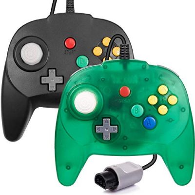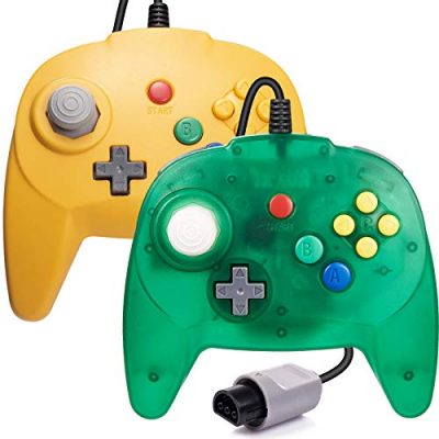 The miadore 2 Pack Retro N64 Controllers are wired gamepad remotes designed for the N64 console. With a jungle green and yellow color scheme, these controllers make a great gift for nostalgic gamers. The controllers feature a sensitive D-pad, 10 function buttons, and a high-quality analog stick made in Japan. The separate grips allow for different hand positions, enhancing gameplay for various game types. The controllers also have a functional expansion port for rumble paks or memory cards. While they are not compatible with PC emulators, they are perfect for multiplayer gaming and introducing children to classic N64 games. These third-party controllers come with a money-back guarantee if not satisfied within 30 days.