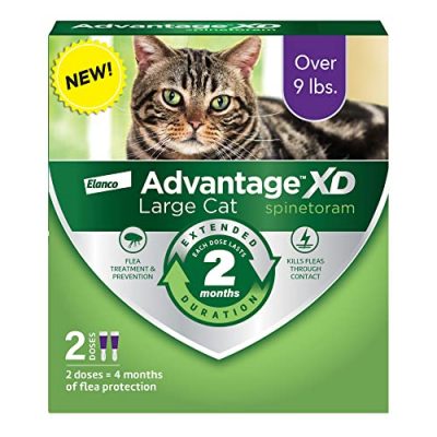 The NEW Advantage XD Large Cat Flea Prevention & Treatment provides an effective and long-lasting solution for the prevention and treatment of fleas in cats over 9 lbs. This product offers 4 months of coverage with 2 topical doses, making it convenient and cost-effective. The fast-acting treatment starts killing fleas through contact within 30 minutes to 4 hours, providing quick relief for your cat. With its easy-to-apply topical formula, no prescription is needed. The fragrance-free formula contains a naturally derived ingredient, Spinetoram, which has won a Green Chemistry award. Overall, this product is highly recommended for its long-lasting protection, effectiveness, and ease of use.