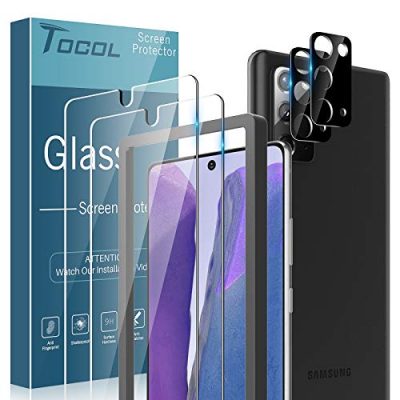 The TOCOL 4 Pack fit for Samsung Galaxy Note 20 5G Screen Protector Bundle is a reliable and high-quality option to protect your device. It includes 2 tempered glass screen protectors and 2 camera lens protectors, all featuring bubble-free installation and case-friendly design. The screen protector is made of 9H super strong military explosion-proof glass from Japan, ensuring exceptional protection even from falls. It also provides a smooth touch feeling and easy installation with the included frame. With a commitment to customer service, TOCOL offers round-the-clock assistance for any issues you may encounter. The package includes precise laser-cut protectors for maximum coverage. Please note that this bundle is only compatible with Samsung Galaxy Note 20 5G (not for Ultra).