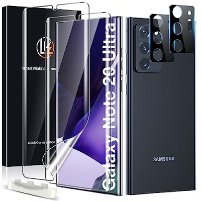 The LK Screen Protector is specially designed for the Samsung Galaxy Note 20 Ultra 5G, providing all-round protection for your phone's screen. Made from flexible TPU film, this screen protector covers the curved edges perfectly, offering maximum coverage and preventing scratches and bumps. With 99% HD clear screen and high touch sensitivity, it maintains the bright and colorful image quality while ensuring smooth phone responsiveness. The ultrasonic fingerprint feature is also supported, making it compatible with the Samsung Galaxy Note 20 Ultra 5G Sonic Fingerprint Scanner. The protector is easy to install, accurately positioning on the screen, and can be removed without leaving any residue. The package includes a camera lens protector made of 9H glass to protect the lens from drops and scratches. Overall, it is a reliable and affordable option for protecting your Samsung Galaxy Note 20 Ultra.