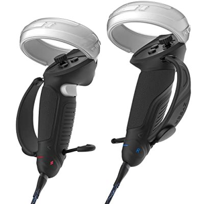 The ZYBER Rechargeable Controller Grips for Meta Quest 2 Accessories provide a comfortable and ergonomic grip for your Quest 2 controllers. With rechargeable customized batteries that last 20-24 hours, you won’t need to constantly replace batteries. The extended grip is suitable for people with larger hands, and the adjustable silicone hand strap ensures a secure and comfortable fit. The controller covers feature different anti-slip patterns for better grip, and the transparent halo protector adds drop and shock protection without blocking the signal. This set provides all-round protection for your controllers, and includes 2 grips, 2 halo protectors, 2 rechargeable batteries, a charging cable, and a user manual. Overall, the ZYBER Rechargeable Controller Grips are a great accessory to enhance your VR gaming experience.