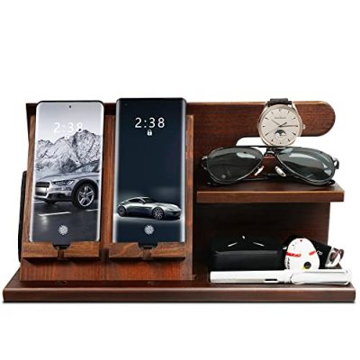 The Wood Phone Docking Station with 2 Cell Phone Charging Stand offers a stylish and practical solution for organizing personal belongings. With its sturdy construction and easy assembly, it provides a convenient location to store phones, wallets, keys, watches, pens, glasses, and more. The docking station makes an excellent gift for men on special occasions. While there have been a few reports of broken items, the overall customer satisfaction is high. The only minor drawback is the slightly awkward charging port. Nevertheless, this multifunctional docking station is a great addition to any home or office.