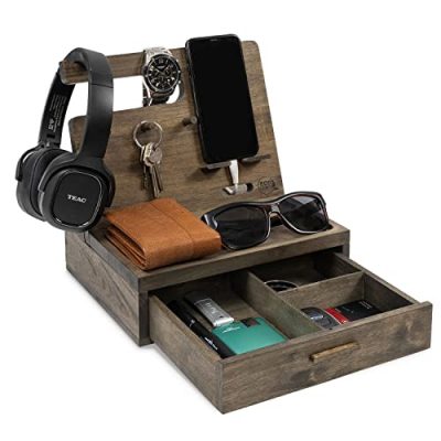 The Peraco Wood Phone Docking Station and Mens Nightstand Organizer is a practical and attractive solution to keep your daily essentials organized. It offers ample space for your phone, charger, glasses, wallet, and more. The phone mount feature allows for convenient charging and FaceTime usage. The high-quality wood construction adds a touch of sophistication to any room. While some users have reported issues with the phone mount not holding the phone securely, overall, this docking station provides a good value for its price. It is also easy to assemble and comes with eco-friendly packaging, making it a thoughtful gift choice for someone who appreciates both style and functionality.