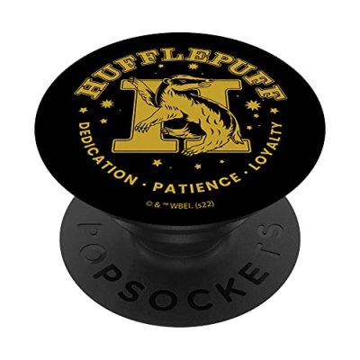 The Harry Potter House Hufflepuff Dedication Patience Loyalty PopSockets Swappable PopGrip is an officially licensed accessory that showcases your love for Hufflepuff. It is compatible with a wide range of devices and cases, allowing you to personalize your phone or tablet with this Hufflepuff logo accessory. The PopGrip can be easily swapped for another design or removed for wireless charging. It also features an expandable stand for hands-free use during video calls or watching videos. The advanced adhesive ensures secure placement on most devices and cases, although it may not stick to certain silicone, waterproof, or textured cases. Overall, this PopSocket is a great accessory for Harry Potter fans who belong to the Hufflepuff house.