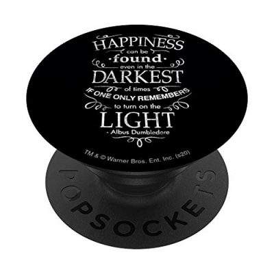 The Harry Potter Happiness Quote PopSockets Swappable PopGrip is a must-have accessory for fans of the beloved fantasy book series. This officially licensed merchandise features a quote from the books and is 100% authentic. The PopGrip is designed with a swappable top, allowing you to switch out the design or remove it for wireless charging. It also functions as an expandable stand, making it perfect for watching videos or taking hands-free photos. The advanced adhesive allows for easy repositioning on most devices and cases. Please note that it may not stick well to silicone or highly textured cases. Overall, this PopSocket is a great way to show off your love for Harry Potter while adding functionality to your phone or tablet.