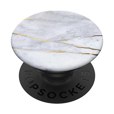Enhance the functionality and style of your mobile device with the White Gold Marble PopSockets Swappable PopGrip. This handy accessory features a PopGrip with a swappable top, allowing you to switch out the design or remove it for wireless charging. The expandable stand lets you enjoy hands-free viewing, video calls, and group photos. Its advanced adhesive allows for easy repositioning on most devices and cases. Please note that it may not stick to silicone, waterproof, or highly textured cases, but works best with smooth, hard plastic cases. The White Gold Marble PopSockets Swappable PopGrip is compatible with the iPhone 11 and comes in a stylish black color.