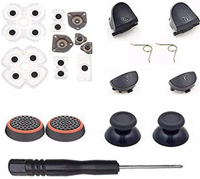 The Sony Playstation 4 PS4 Dualshock 4 Controller Repair Kit is a brand new, high-quality kit designed for repairing Sony Playstation 4 Dualshock 4 controllers. It includes L1 R1 L2 R2 trigger springs buttons, 2 joystick thumb sticks, 2 joystick silicone caps, 2 springs, 1 screwdriver, and 1 set of silicone conductive rubber pads. Please check the description, images, and package carefully before purchasing.