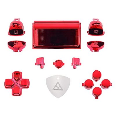 Enhance the look of your PS4 controller with the eXtremeRate Replacement D-pad and buttons in chrome red. This full set of buttons is custom-designed to fit perfectly on the PS4 controller, giving it a sleek and stylish appearance. The shiny metallic chrome color adds an eye-catching element to your gaming experience. The buttons are precisely cut to ensure they function just like the original buttons. To install these replacement buttons, you will need to disassemble your controller, so make sure you are comfortable with controller installation. The package includes all the necessary buttons and a cross screwdriver for ease of installation. Please note that some buttons may not fit all PS4 controllers. Overall, this replacement button set provides an easy and affordable way to customize and repair your PS4 controller.