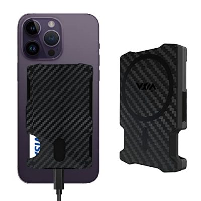The GUANZHI Magnetic Wallet for Men Phone Card Holder is a sleek and practical accessory for your iPhone. With its powerful magnets, it securely attaches to your iPhone, allowing you to conveniently carry your credit cards and driver's license. The wallet features RFID blocking technology to protect your cards from RFID Chip Readers. It is compatible with iPhone 14/14 Plus/14 Pro/14 Pro Max/13/13 Pro/13 Pro Max/12/12 Pro/12 Pro Max and magnetic cases. The wallet comes in a stylish black carbon fiber color. It is favored by both men and women and makes a great gift for travelers. However, some customers have found it bulky and had difficulties with card insertion and retrieval.