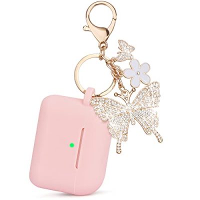 The Bling Case for Apple Airpods Pro 2nd Generation by VISOOM is a protective and cute case designed specifically for the Airpods Pro 2. Made of premium silicone, this case offers protection against bumps, drops, and scratches, while also preventing skin allergies. The case features a shimmery butterfly keychain that can be attached to your handbag or clothing, providing a stylish accessory. The front LED is visible, allowing for easy charging without removing the case. The package includes one case and a rose gold keychain. This pink case is perfect for girls who want a touch of sparkle and protection for their Airpods Pro 2.