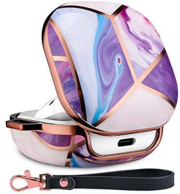 The YOMPLOW Case is a stylish and durable protective cover for your Samsung Galaxy Buds Live or Buds Pro. Made with high-quality hard TPU material, it features a unique Purple Gold Marble design that won't fade or rub off. The case is scratch-proof and anti-lost, with a keychain for added convenience. It also has a separate top cover and body for easy access and supports wireless charging without needing to take the case off. With a 30-day money-back guarantee and excellent customer satisfaction, the YOMPLOW Case is a great choice for women and girls who want to protect and personalize their Galaxy Buds.