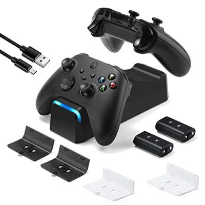 The Controller Charger Station for Xbox One is a must-have accessory kit for Xbox gamers. It is compatible with Xbox One, Xbox One X, Xbox One S, Xbox One Elite, Xbox Series X, and Xbox Series S. The charger and battery kit come with 4 Xbox controller battery pack covers, making it versatile for different Xbox controllers. The rechargeable battery pack for Xbox one controller has a fast charging time of only 2.5 hours and provides up to 15-20 hours of playtime on each charge. The charging dock is easy to use, just place your controllers on it and they will start charging. It also features smart charging with LED indicators that show the charge status. The charger station is equipped with overheating and short circuit protection. Despite some issues with the charging prongs and loose fitting, overall, this product is a good buy for its price.