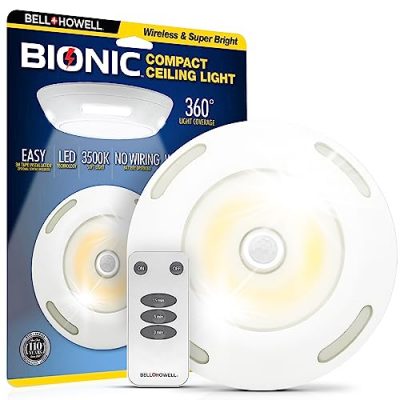 The Motion Sensor Light Indoor Battery Operated Ceiling Light by Bell + Howell is the perfect solution for areas in your home that need extra illumination without the hassle of wires or costly installations. This wireless ceiling light can be easily installed in living rooms, bedrooms, kitchens, garages, hallways, and closets. With 34 high powered LEDs that are designed to last 50,000 hours, this light provides a 360° wide-angle illumination of up to 1200 square feet. The motion sensor function can detect movement from 15 feet away, making it ideal for use in hallways and closets at night. It also comes with a remote control that allows you to conveniently operate the light from a distance. You can set the timer to automatically shut off the light after 3, 5, or 15 minutes of no use, saving battery life. With its easy installation, motion sensor feature, and remote control operation, the Motion Sensor Light by Bell + Howell is a versatile and practical lighting solution for any indoor space.