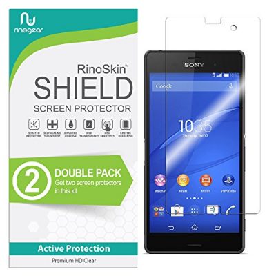 The RinoGear Screen Protector is designed to protect the Sony Xperia Z3 screen, preserving its new look and value. It is compatible with most Z3 cases and made with a unique flexible film material that can cover curves. The crystal clear clarity and high-definition surface provide a glass-like feel, allowing for 100% touchscreen functionality. This product is a 'wet install' film, ensuring flexibility and easy installation. Each screen protector includes a lifetime replacement film voucher. However, customer reviews indicate disappointment, with one customer stating that it was more like a plastic paper than a screen protector.