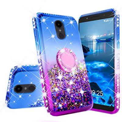 The Alcatel Revvl 2 (5052W) Case is a cute and stylish phone case designed for teenage girls and women. It features a unique liquid glitter design with diamond rhinestones embedded around the edges, creating a fun and eye-catching look. The liquid inside the case moves freely, resembling stars floating in water. The case is compatible with TMobile Alcatel Revvl 2 (5052W) and Alcatel 3. It comes with a 360-degree turnable ring kickstand and a neck strap for added convenience. Precisely cut openings allow full access to device functions and ports, while sensitive button covers ensure responsive presses. The case also offers anti-scratch protection and shockproof air-cushion corners to absorb impact. Available in Blue/Purple color.