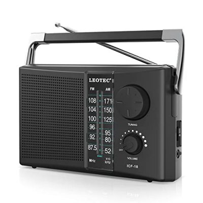 The LEOTEC Portable AM FM Radio is a compact and versatile radio that offers excellent reception and clear sound. With a retractable copper telescopic antenna, this radio ensures strong and stable reception on both AM and FM frequencies. The easy-to-read radio dial and big tuning knob make it simple to find and tune in to your favorite stations. The radio features a big external speaker for loud sound, as well as a headphone jack for private listening. It can be powered either by the included 120V AC power cable or by 2 D size batteries for portable use. The LEOTEC Portable AM FM Radio is the perfect companion for various activities such as kitchen work, exercise, camping, and more.