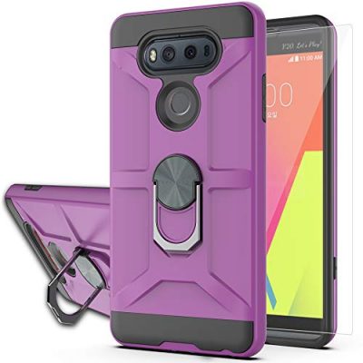 The YmhxcY Compatible for LG V20/VS995/H990/LS997/H910 Case is a dual-layer shockproof phone case designed for the LG V20. It comes with a rotating ring kickstand holder, a free HD screen protector, and a unique patented design. The case features a metal ring that can rotate 360 degrees for convenient video browsing, and it is made of a PC+TPU two-in-one design for extra durability. The case also has a CD-grain metal patch on the back for car-mounted support. With its strong and durable structure, skid-proof coating, and sweat-proof design, this case offers comprehensive protection for your LG V20. The YmhxcY Compatible Case is available in ZS Purple color and has dimensions of 7.09Lx3.15Wx0.59H.