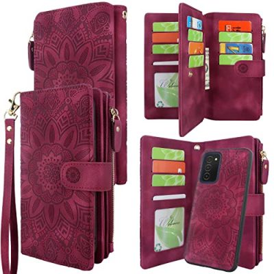 The Harryshell Detachable Magnetic Zipper Wallet Leather Case is designed specifically for the Samsung Galaxy A03S. Made of luxury PU leather, it provides excellent protection against scratches and daily wear. With 12 card slots, a zipper pocket, and a cash coin pocket, this wallet case offers ample storage for your essentials. The removable magnetic shockproof back cover allows for easy access to your phone, while the built-in magnet keeps it secure. The case also features a portable hand strap for added convenience. Available in Flower Wine Red color, this wallet case is both stylish and functional.