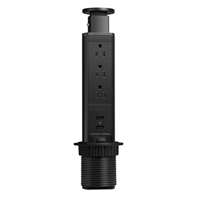 The Pop Up Electrical Outlet for Countertop is a retractable power strip with 3 AC outlets and 2 USB ports. It features a hidden design that keeps your space clean and neat. The AC outlets are perfect for powering laptops and other appliances, while the USB ports can charge phones and tablets. The outlet is easy to install and can be placed in any position inside your countertop. With its smart design and heavy construction, it is the perfect modern touch to any space. However, it is not waterproof, so it should not be placed close to damp areas like the sink. Overall, this product provides a convenient and stylish solution for adding power outlets to your countertop or desk.