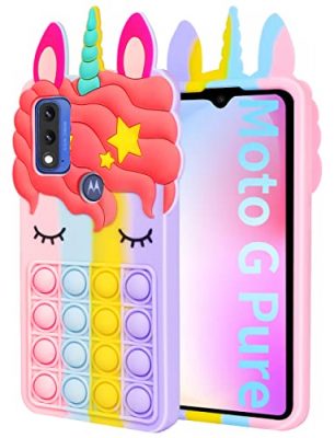 The Toycamp Fidget it Case is a cute and fashionable silicone phone case designed specifically for the Motorola Moto G Pure. With its 3D Unicorn head pattern, this case stands out with a unique and dynamic style. It not only offers stylish looks but also provides protection with its scratch-resistant, dustproof, and easy-to-clean features. The case is made of high-quality silicone material, ensuring durability and protection against drops and scratches. Additionally, the case doubles as a stress relief toy, featuring a bubble wrap texture that can be pressed for instant stress relief. This case makes a great gift for children, adding a fun surprise to their holidays.