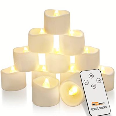 Create a cozy ambiance with the Homemory Flickering Flameless Candles with Remote. These battery-operated tea lights feature a realistic flickering flame and melting edges to mimic real candles. With a convenient remote control equipped with a timer function, these candles are perfect for home decor, table centerpieces, and special occasions like Halloween and Christmas. The high-capacity batteries provide up to one week of lighting time, making them a durable and long-lasting option. The candles fit into most tea light holders and wall sconces, offering versatility in their use. Say goodbye to the hassle of wax candles and fire hazards with these safe and convenient flameless candles.