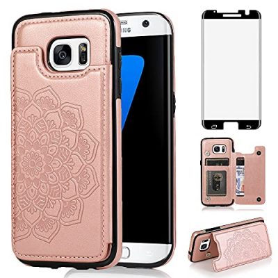 The NKECXKJ Design for Samsung Galaxy S7 Edge Case with Tempered Glass Screen Protector is a stylish and functional phone case that offers excellent protection for your Samsung Galaxy S7 Edge. The case features a hidden card slot that securely stores up to 2 cards and some cash. It also includes a built-in kickstand, allowing you to enjoy hands-free video calls, reading, and movie-watching. Made from TPU and PU leather, this case provides strong protection against sudden drops. With its rose gold color, it adds a touch of elegance to your phone. The case also comes with a tempered glass screen protector for added protection. Overall, this case is a great option for women who want a phone case that is fashionable, practical, and durable.