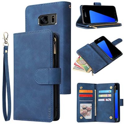 The CHICASE Wallet Case for Galaxy S7 Edge is a stylish and functional phone case made of high-quality durable PU leather. It offers comprehensive protection to your phone with its soft TPU inner shell and raised edges. The case features multiple card slots, including an ID card slot and a cash slot, as well as a convenient zipper wallet pocket. It also has a hands-free viewing stand design for video-chatting and movie-watching. The secure magnetic closure keeps your phone and belongings safe. With precise cut-outs, installation is easy and all features remain accessible. Overall, this wallet case combines style, protection, and functionality.