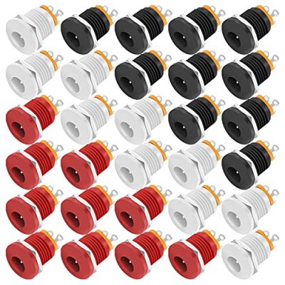 The DaierTek 2.1mm DC Jack 5.5×2.1mm Female DC Power Jack is a versatile connector suitable for a wide range of applications. With a size of 5.5X2.1mm and a 11.5mm panel mounting hole diameter, this DC Jack is designed to handle a rating of 2A 12V DC. It features a plastic material with a hex nut and 3 pin solder terminals, ensuring a secure and reliable connection. The 2.1mm DC Jack can be used under various power conditions, ranging from 6V to 24V DC. It is suitable for use with guitar effect pedals, media players, MP3/MP4 players, AV equipment, car audio systems, and more. The package includes 30pcs of 2.1 x 5.5mm DC Barrel Jacks in red, white, and black colors, with 10pcs of each. Overall, the DaierTek 2.1mm DC Jack 5.5×2.1mm Female DC Power Jack offers great value and functionality for its price.
