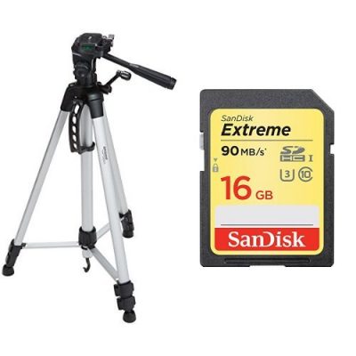 The Amazon Basics 60-Inch Lightweight Tripod with SanDisk 16GB Card is an affordable tripod package deal suitable for various devices. With adjustable-height legs and rubber feet, it offers flexibility and stability. The tripod is compatible with video cameras, digital cameras, GoPro devices, and even scopes. It also includes a SanDisk 16GB Card, providing the speed and capacity needed to capture 4K Ultra HD video. The tripod's 60MB/s write speeds enable faster shot to shot performance, while its 90MB/s transfer speeds allow for quicker file transfers. Despite being lightweight, some reviews mention that it lacks sturdiness and has a somewhat toy-like appearance. However, many appreciate the value for the price and its usefulness for long exposure photography.