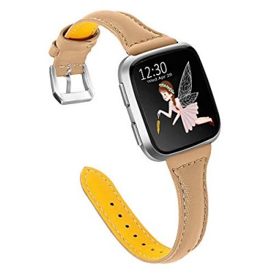 The JOYOZY Genuine Leather Bands are compatible with Fitbit Versa, Versa 2, and Versa Lite smartwatches. Made from soft top genuine leather, these bands offer a slim yet durable and supple design for all-day comfort. The special streamlined design ensures higher wearing comfort and an elegant and fashionable look. With easy tool-free installation and improved quick release spring bars, changing the band is a breeze. The bands are adjustable to fit wrists 5.5" – 7.8" and are perfect for petite or large wrists. With a rating of 4.4/5 and positive customer reviews, these bands are a great choice for Fitbit Versa owners.