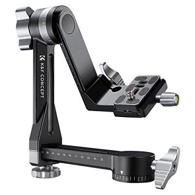 The K&F Concept Tripod Gimbal Head is an essential tool for photographers, especially professionals. Made with premium aluminum alloy, this heavy-duty gimbal head supports a weight capacity of up to 44.09lbs/20kg. It features smoother rotation even in extreme temperatures, thanks to its exclusive lubricant. With its new CNC process, the head offers enhanced precision and durability. The 360-degree horizontal and vertical rotation allows for capturing shots from multiple angles. The gimbal head has precise adjustment scales, and the robust damping locking force securely holds large cameras at any angle. Compatible with most tripods and cameras, it even comes with screw adapters and a quick-release plate. Overall, this gimbal head is a great value for its quality and functionality.