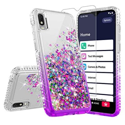 The Galaxy Wireless Liquid Glitter Phone Case is designed for the GreatCall Jitterbug Smart 3 (2021) for Seniors, also known as Lively Smart. This case is perfect for teenage girls and women with its stylish purple and clear liquid design. The embedded diamond rhinestones add an extra touch of glamour. The liquid element in the case can move freely, creating a fun visual experience. Made from premium TPU material, this case provides long-lasting protection from scratches and is flexible and bendable. It features shockproof air-cushion corners for additional impact absorption. The package includes a tempered glass screen protector for added safety. With positive customer ratings and reviews, this case offers both style and protection for your Jitterbug Smart 3.