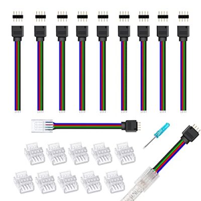 The 10PCS LED Strip Connectors is a versatile product that allows you to repair and extend your LED lights with ease. Made of high-quality PBT material, these 4 pin connectors are heat resistant, fire resistant, and offer excellent insulation. They are compatible with all RGB light strings with a width of 10mm and work well for connecting LED lights in kids' rooms. With its simple design, you can easily connect two lights into one without any guidance. The package includes 10 LED strip connectors, providing you with ample supply for your needs. Overall, these connectors are a convenient and reliable solution for adding multiple LED strips to your setup.