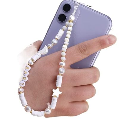 The SYSUII Beaded Phone Lanyard Wrist Strap is a colorful and fun accessory made from Love alphabet beads, moons, pentagrams, faux crystal beads, soft clay, and more. Designed for women and girls, this cute phone charm can be easily attached to any phone case and adds a lively touch to your device. It can also be used as a decoration for wallets, keychains, ID cards, tablets, and more. Made of polymer clay and strong nylon rope, it is durable and can withstand everyday use. The phone lanyard can also be worn as a bracelet or necklace, making it a versatile accessory. Overall, it's a great gift idea and a stylish accessory to add a youthful vibe to your daily look.