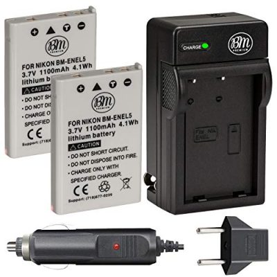 The BM Premium 2-Pack of EN-EL5 Batteries and Battery Charger is a must-have for Nikon Coolpix P80, P90, P100, P500, P510, P520, and P530 digital camera owners. This rechargeable Li-ion battery pack comes with two EN-EL5 batteries that provide a super long time recording for your camera. The batteries are 100% memory free and come with a one-year warranty. The pack includes a rapid AC/DC charger, LCD screen protectors, and a micro fiber cleaning cloth. With positive customer ratings and reviews, this product is highly recommended for photographers who want reliable and long-lasting power for their Nikon Coolpix cameras.