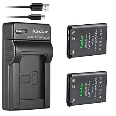 The Kastar Battery (X2) & Slim USB Charger is a high-quality replacement battery for EN-EL10 MH-63 and Coolpix S60, S80, S200, S210, S220, S230, S500, S510, S520, S570, S600, S700, S3000, S4000, S5100 cameras. The two-pack high capacity batteries use high-quality Japanese cells which ensure longer battery life with no memory effect. The new smart slim USB charge design makes it easy to carry and can be powered by USB Wall & Auto Charger or a computer. With automatic constant current control and overcharging and short circuit protection, this charger is safe to use. It comes with FCC, CE, and ROHS certification and includes an 18-month manufacturer warranty.