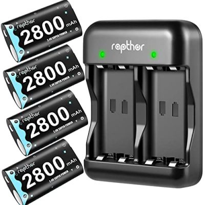 The rapthor 2800mAh Rechargeable Controller Battery Pack is a high-capacity battery pack designed for Xbox controllers. It offers 25+ hours of non-stop playtime, making it perfect for long gaming sessions. The pack includes four 2800mAh batteries and a charger that can fully charge two batteries in just 3 hours. The batteries are compatible with Xbox One, Xbox One S, Xbox One X, Xbox One Elite, Xbox Series X, and Xbox Series S. With built-in smart protection, the batteries are safe to use and have more than 2000 cycles. The pack provides a cost-effective and environmentally friendly solution, eliminating the need for disposable batteries. Overall, it is highly rated by customers for its long playtime and reliable performance.
