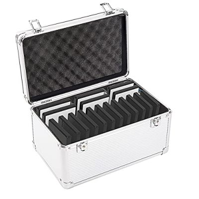 The GLOTRENDS Phone Storage Case is a handy and stylish solution for storing and protecting your cellphones. It features 18 slots that are designed to fit phones up to 6.8 inches in size, including popular models like the iPhone 13 Pro Max and Samsung Galaxy S21 Ultra 5G. The case is made of aluminum and composite wood material, providing all-round protection for your cell phones. It is anti-stain, dust-proof, splash-proof, anti-scratch, and anti-drop, ensuring that your phones are safe and secure. The handheld design makes it easy to carry and transport, although it does not meet air transport standards. Overall, it is a great storage case for those looking to keep their cellphones organized and protected.
