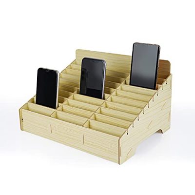 The Ozzptuu Cell Phone Storage Box is a highly functional and attractive desktop organizer that effectively keeps your workspace neat and organized. It offers ample storage space with its 30 compartments and is made of durable and eco-friendly wooden material. While assembly may pose some challenges and there might be an initial odor issue, the overall quality and functionality of the product make up for these minor drawbacks. It is particularly ideal for teachers, conference offices, or anyone looking to tidy up their desk. With its sleek design and sturdy construction, this cell phone storage box is a great addition to any workspace.