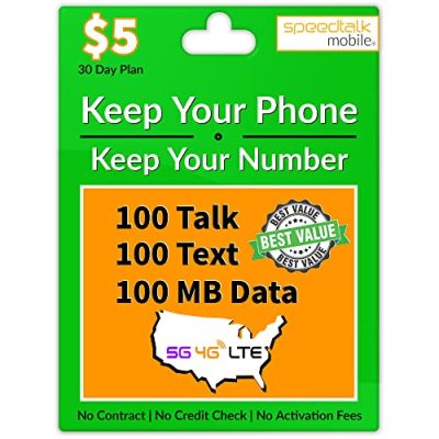 Get the SpeedTalk Mobile Preloaded $5/Month Smart Phone SIM Card and enjoy 100 Texts (SMS) + 100 Minutes (Talk) and 100MB 4G LTE Data with no contract needed. This SIM card is compatible with any device as it comes in a triple cut SIM (Standard, Micro, and Nano). You can also choose to keep your existing phone number or get a new one. With no credit checks, hidden contracts, or extra costs, this SIM card offers a hassle-free experience. However, please note that the service is only available within the United States. The activation process is simple and support is available 7 days a week. Dimensions of the SIM card are 3.35Lx2.20Wx0.10H.