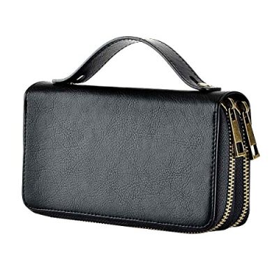 The HAWEE Double Zipper Wallet is a stylish and practical clutch purse for women. Made from soft artificial leather, this wallet is stain resistant and lightweight, making it easy to carry. With its dual zipper design, it can hold full-screen smartphones up to 6.2 inches and has ample space for cards, coins, cash, and notes. The wallet is compatible with a range of smartphones, including the iPhone 11, iPhone X, and various Samsung Galaxy models. Its classic design is suitable for everyday use, and it makes a great gift for mothers, wives, girlfriends, and daughters. Available in black strap color.