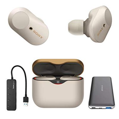 - Bundle Includes: Sony WF-1000XM3 True Wireless Noise-Cancelling Earbud Headphones with Charging Case (Silver), Studio Battery Pack (5,000m Ah), and 4-Port USB 3.0 Hub