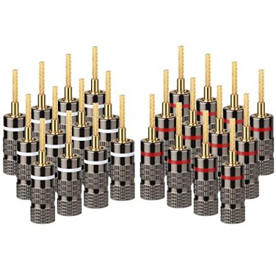 Upgrade your audio setup with the Flex Pin Banana Plugs for Speaker Wire. These premium speaker plug connectors feature durable gold plating, ensuring superior sound quality and long-lasting performance. With their flex pin plug type and dual screws for secure connections, you can enjoy clear, immersive sound without any static or weak audio. These connectors are easy to install and compatible with various audio equipment, making it easy to customize your setup. With 12 pairs (24 pieces) in a pack, you get excellent value for your money. Simply put, if you want to enhance your audio experience, these banana plugs are a must-have.