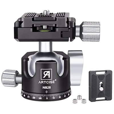The ARTCISE Low Profile Camera Tripod Ball Head is a high-quality and durable ball head that enhances the stability and control of your camera or lens. It features excellent processing technology with all-metal aluminum made by CNC machining, providing a delicate and long-lasting surface. The low center of gravity design improves stability, while the ergonomic T-lever and double U-shaped groove design offer fast and accurate control. The ball head is compatible with most DSLR cameras, camcorders, telescopes, and professional tripods. It also comes with a lifetime warranty, guaranteeing customer satisfaction. With its impressive features and reliability, this ball head is a great addition to any photography or videography equipment.
