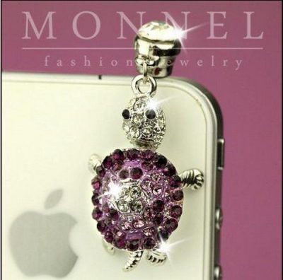 The Monnel IP202-B Purple Crystal 3D Turtle Pendant Cell Phone Anti Dust Plug Charm is a fashionable and attractive accessory designed to protect your cell phone's docking port from dust and lint. Made with high-quality zinc alloy metal, rhinestone crystals, and a plastic plug, this charm is both stylish and durable. It fits all phones and electronic products with a 3.5mm earphone jack, including iPhone, iPad, iPod, Huawei, MI, Samsung Galaxy, and more. The purple crystal turtle design adds a touch of luxury to your device. With a measurement of approximately 2.9 cm (H) x 1.7 cm (W) x 0.9 cm (D), this charm is the perfect accessory to personalize your phone.