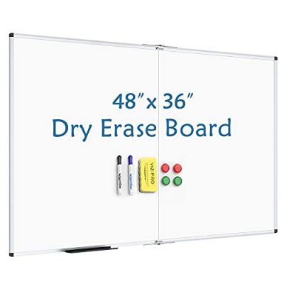 The VIZ-PRO Dry Erase White Board/Magnetic Foldable Whiteboard is a versatile and high-quality whiteboard that is perfect for home, school, office, and more. With its oversized magnetic writing surface, you can easily write and erase using dry-erase markers. The folding design ensures that the whiteboard is easy to transport without warping. The silver aluminum frame is scratch-resistant and the marker tray is detachable for convenience. This whiteboard is a great addition to any space with its classic design that matches any decor. It comes with fixing kits, a dry eraser, markers, and magnets. Easy to install and stable, this whiteboard is a practical and functional choice.