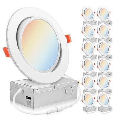 Upgrade your lighting with the PARMIDA 6 Inch 5CCT Ultra-Thin LED Adjustable Gimbal Recessed Lighting. This pack includes 12 slim panel lights that offer adjustable color temperature, allowing you to set the perfect lighting ambiance in your space. The gimbal/eyeball design provides a 360° tilt range, making it ideal for sloped ceilings or areas where directional lighting is desired. With dimmable capability and easy installation, this recessed lighting is a versatile and convenient choice. It is also ETL-Listed and IC-Rated AIRTIGHT for safety and quality assurance. This product comes with a 5-year warranty and dedicated customer service. However, some customers have reported inconsistent lighting and weak material.