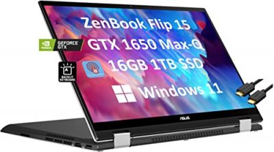 The ASUS Zenbook Flip 15.6" FHD 2-in-1 Touchscreen laptop is a powerful and versatile device perfect for various tasks from family entertainment to remote learning. It features a 15.6-inch FHD touchscreen display with Nvidia GTX1650 Max-Q Graphics, allowing for crisp visuals and expandability up to 3 monitors. With an Intel Quad Core i7-1165G7 processor and 16GB RAM, multitasking and productivity are a breeze. The laptop comes with ample storage with its 1TB SSD and offers multiple connectivity options including Thunderbolt 4 and USB ports. It runs on Windows 11 Home 64-bit, providing a user-friendly and modern interface. Overall, the ASUS Zenbook Flip is a reliable and powerful 2-in-1 laptop for various needs.